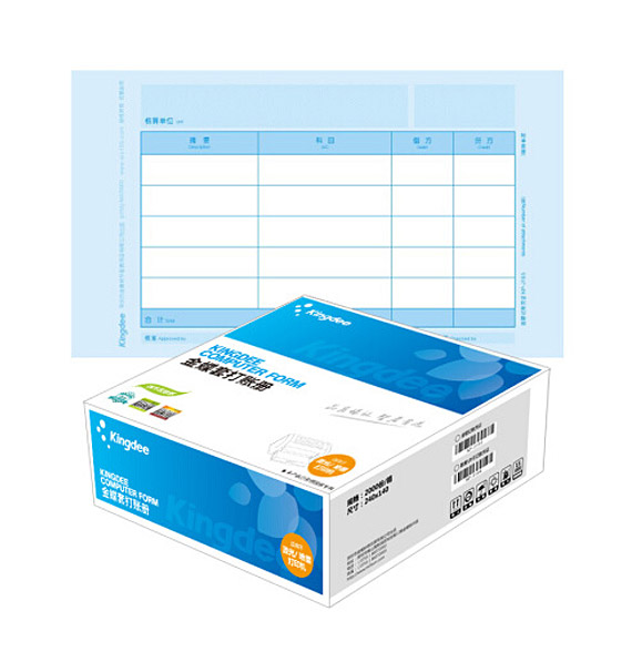 適用于市場通用軟件,可廣泛支持各種商品化的財務及企業管理軟件。 連續賬冊(針式打印機用) 專為針式打印機用戶設計,使用高級純木漿防靜電原紙,賬冊不易起皺變形。每筆財務數據最大金額拾億位,最大數量百萬位。兩側走紙孔,預置切邊與分頁切痕無需使用裁紙刀,只需手工即可分頁。 憑證紙描述 ●使用高級純木漿防靜電原紙,紙質均勻、濕度適中,賬冊不易起皺變形. ●專為針式打印機用戶設計,適用于市場通用軟件.通過設置,可廣泛支持各種商品化的財務及企業管理軟件. ●屬于彩色系列,專業設計,印刷精美; ●在賬薄尺寸方面將原五種賬薄規格簡化為兩種,去掉走紙邊后,憑證與薄本賬冊一致,總賬/明細賬/余額表規格統一且與薄本賬冊相近,數外賬/多欄賬規格統一. ●經過專業視覺設計采用彩色印帽,頁面精美,易收閱讀.兩側走紙孔,預置切邊與分開切痕,賬冊打印完后,無需要使用栽紙刀,只需手工即可分頁,或者去掉走紙邊.賬冊同時預置了裝訂孔,方便使用. ●每筆財務數據最大金額拾億位,最大數量百萬位.數量、外幣的明細賬和多欄賬中,每筆的財務數據最大金額千萬位. ●正品金蝶標準套打賬冊由深圳市金蝶軟件配套用品有限公司獨家出品,完全保證質量。 | ![]() |