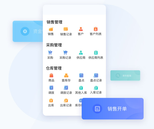 資金管理 收付款單,其他收入支出,應收應付對賬報表,利潤等。 | 成本核算 支持移動平均法和先進先出法、支持自定義套打打印。 | 第三方接口 開放采購、銷售、出入庫、調撥及成本等接口,幫助企業打通業務數據,實現業務經營數據一體化,助力企業發展。 | 智能分析 財務報表、庫存預警、商品分析、及時毛利計算。 |